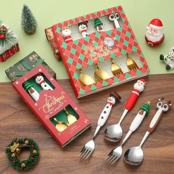 Make your Christmas celebrations sweeter—add this delightful cartoon doll dessert spoon and fork set to your holiday table or gift list today!
