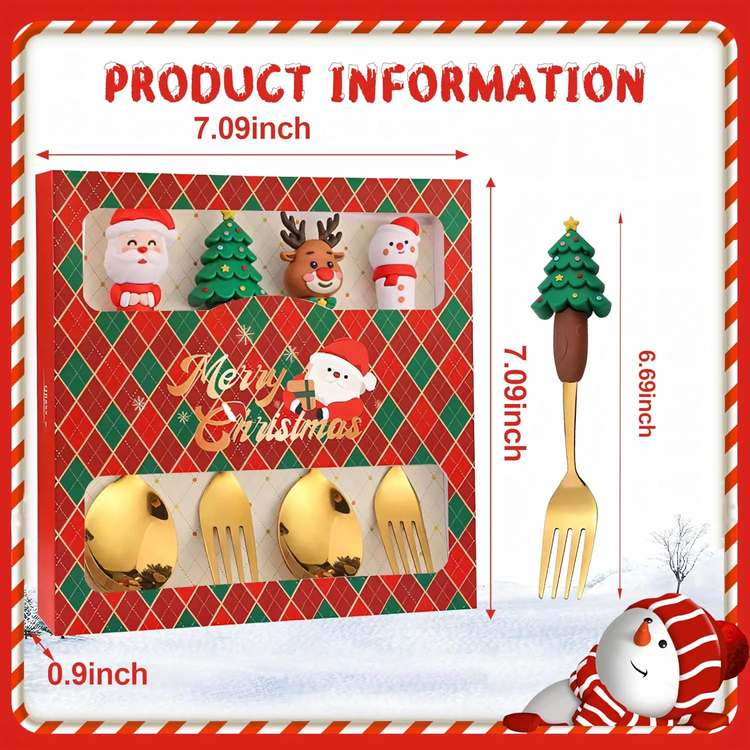 ✨Celebrate the holiday season with this adorable Christmas Stainless Steel Spoon & Fork Set, featuring charming cartoon doll designs perfect for dessert lovers of all ages! Packaged in a beautiful gift box, it’s an ideal present or festive addition to your holiday table.