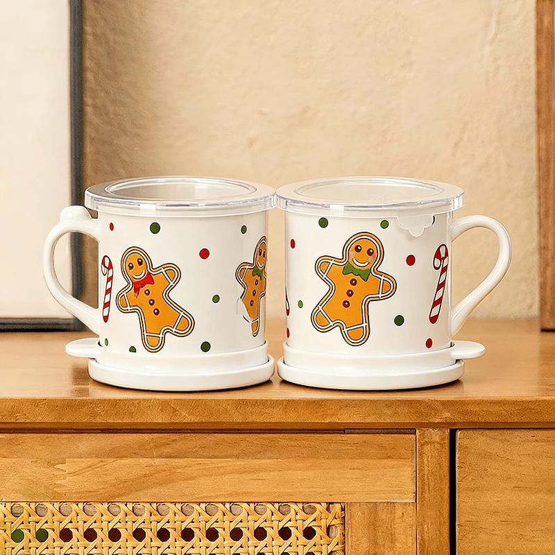 A: Yes! Both the mugs and ceramic lids are dishwasher-safe for easy cleanup after holiday parties.